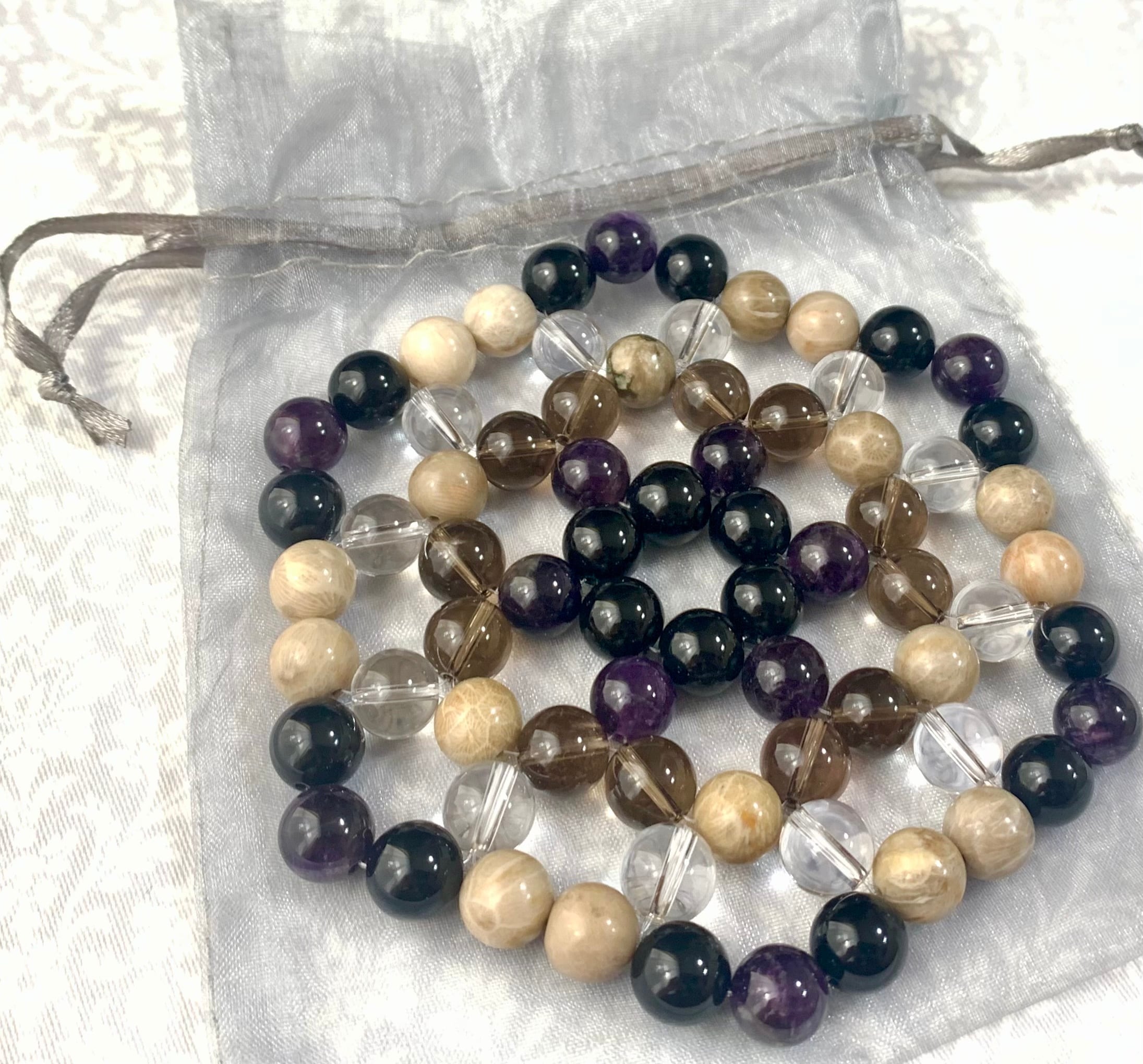 全てレベルの高い10mmのパワーストーンを72個使用しています。魔除けに強い天然石を厳選し、魔除けの願いを込めて作られています。